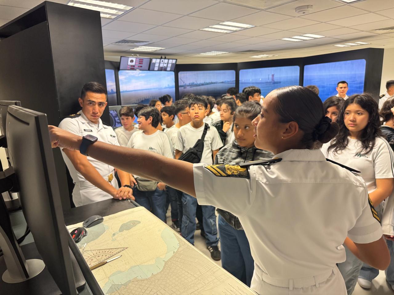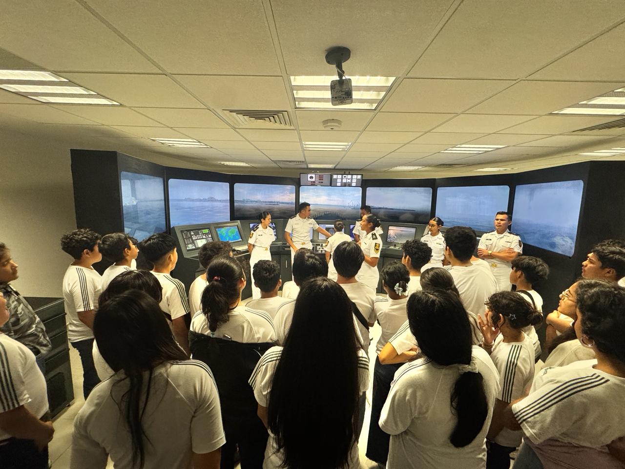 Durante su visita, los jóvenes y personal docente realizaron un recorrido por diversas áreas como la sala “Héroes del 21 de abril”, simuladores de navegación y aéreo, centro astronómico y meteorológico, el auditorio “Luis Carlos Ruano Angulo”, la biblioteca Palafoxiana, así como instalaciones deportivas, entre otras.